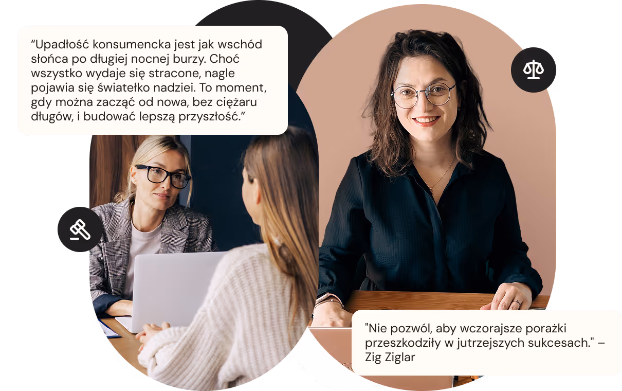 W czasie konsultacji przeanalizujemy Twoją sytuację oraz posiadane dokumenty. Odpowiemy na wszystkie pytania i szczegółowo wyjaśnimy przebieg upadłości konsumenckiej. Krok po kroku opiszemy, czego możesz się spodziewać, oraz jak zapewnimy wsparcie na każdym etapie – jasno, konkretnie i z pełnym zaangażowaniem.